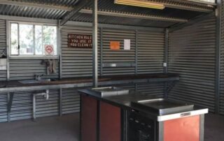 Shearing Shed – Fully functional kitchen, fire place, television, tables & chairs. This facility is used for dining, functions and as a multi-purpose room.